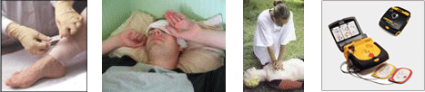- HLR (Hjärtlungräddning), då man ger bröstkompressioner vid hjärtstopp samt behandlar luftvägsstopp vid blockerad luftväg.